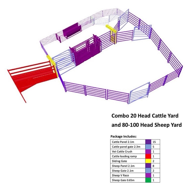 Combo 20 Head Cattle Yard and 80-100 Head Sheep Yard Design package including: